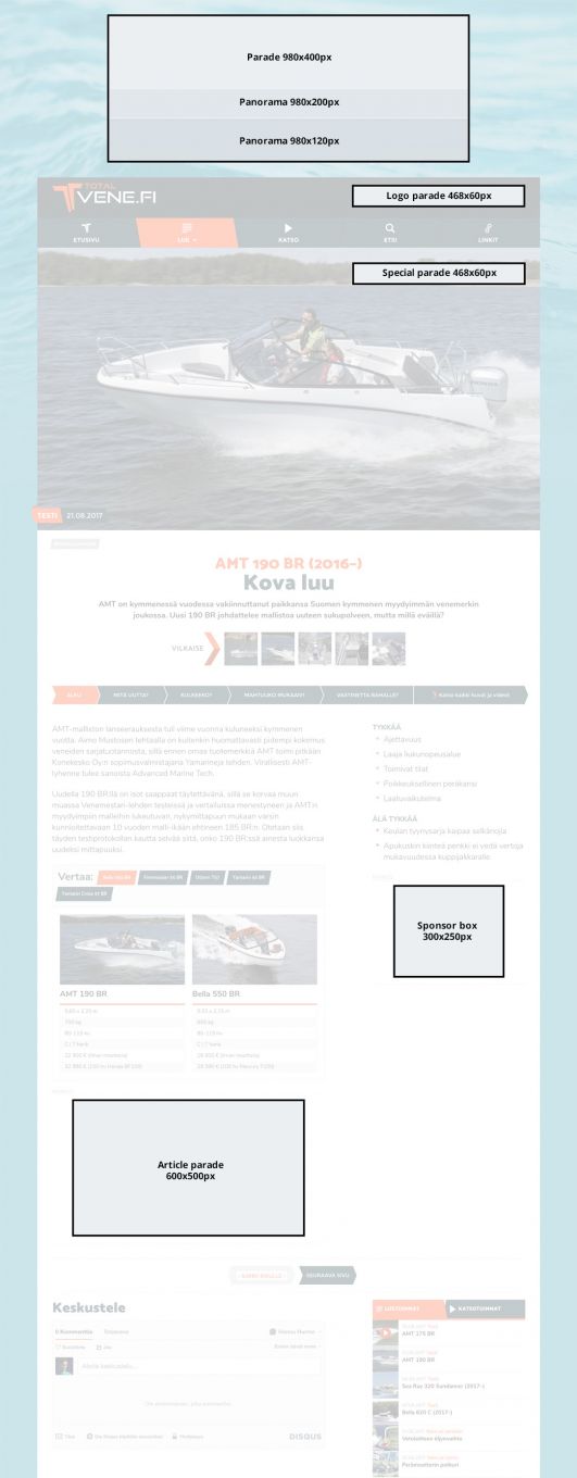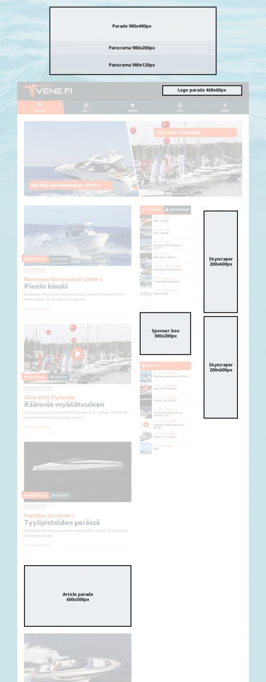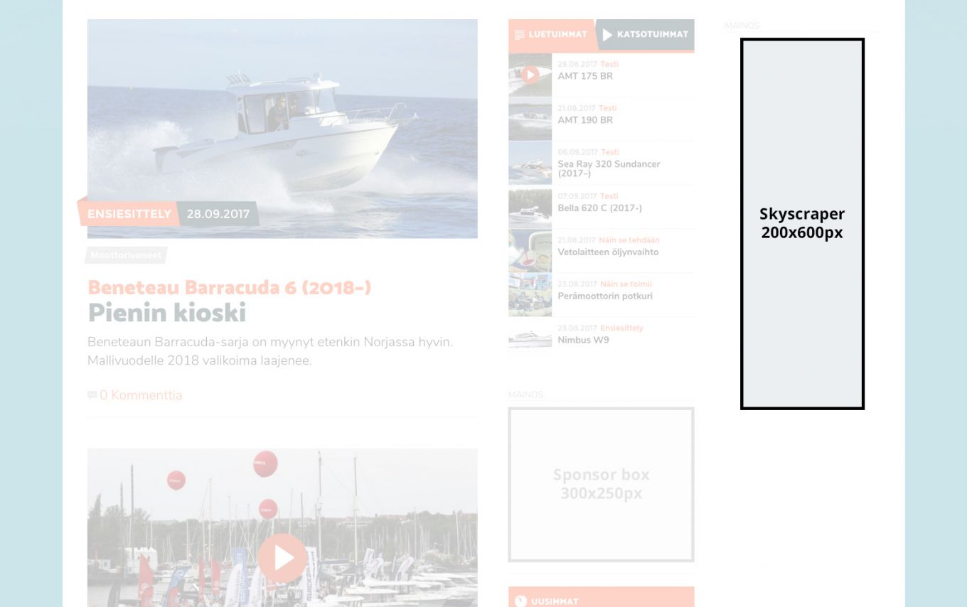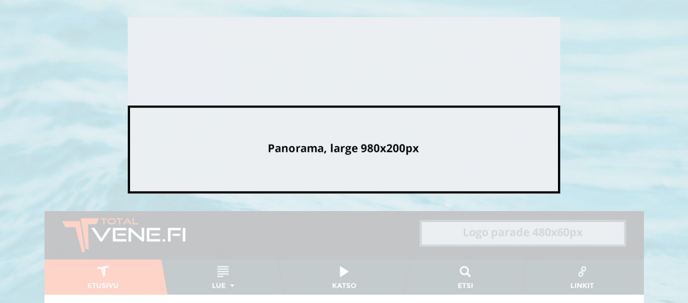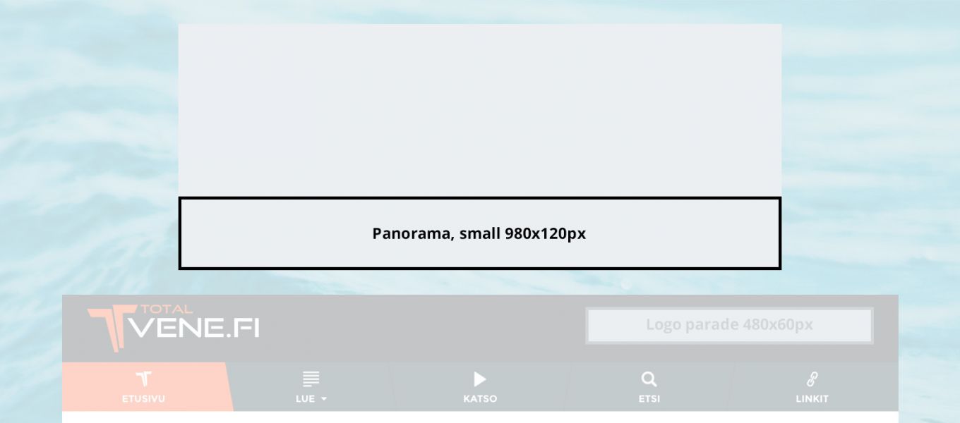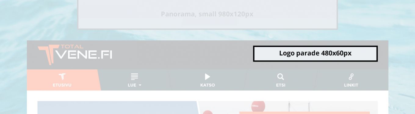 Totalvene.fi offers several options for banner ads. In the section Prices and technical specifications you can find different alternatives and the technical specifications for the ads.