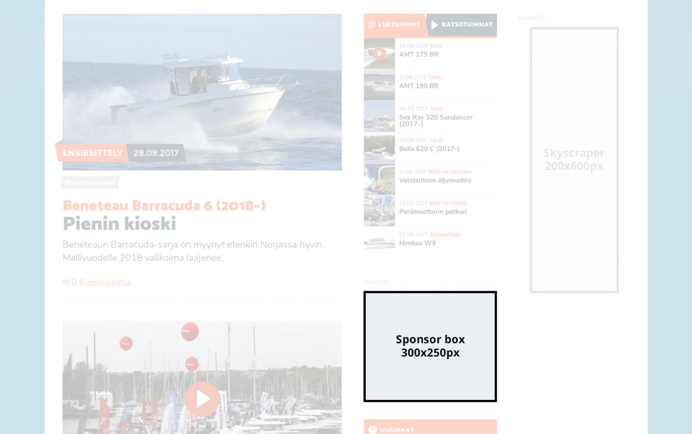 Totalvene.fi is a fresh and exciting new channel that publishes current news, articles, and reviews from the world of boating. Totalvene.fi is a niche tool that can help you get more out of boating marketing. When advertising at Totalvene.fi, you are not dependent on a precise publication date, and we can quickly find a framework that fits your budget in order to produce a successful campaign.