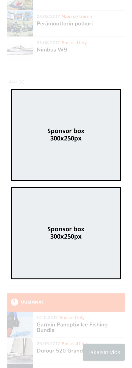 A sponsored article, or a native ad, is an effective way to aim an ad at your desired target group. The editorial layout typical for sponsored ads significantly increases the ad’s weight. A sponsored article is seen with the regular articles in a fixed position but stands out as a separate entity with the label ”advertising”.